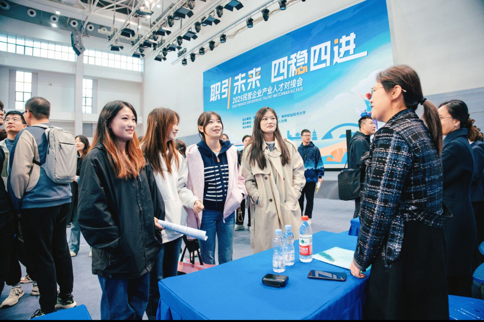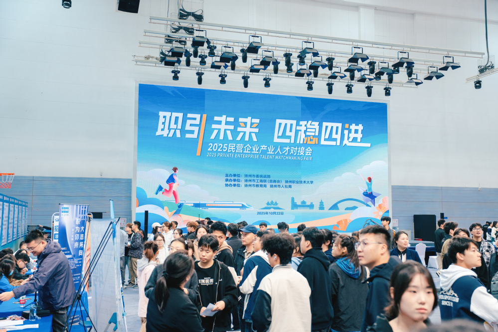 随后,会议现场开展产业链、人才链对接活动。本次活动参与企业106家、提供岗位人数1900多个,达成初步就业意向500多人。近年来,我校始终服务扬州人才建设,助力产业科创名城的核心引擎,围绕打造“人人向往、人才荟萃”的“好地方”,聚焦“613”现代产业体系,持续升级人才政策,为产业发展注入坚实的政策动能与人才支撑。