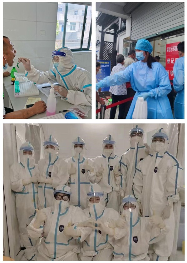 医学检验技术专业的王梦颖同学,家在南京市浦口区顶山街道吉庆社区,作为班级团支书,她第一时间报名参加了南京抗疫志愿服务。从7月24日开始,王梦颖同学作为检测点疫情防控志愿者和其他工作人员一直奋战在抗疫第一线,挨家挨户调查居民核酸检测情况,为黄码人员派发居家隔离告知书。7月28日,王梦颖同学一直奋战到晚上12点,回到家后突然感觉到胃上部伴有阵痛,她及时去医院就诊,第二天依旧坚持到岗,在三十多度高温下穿着防护服,忍着胃疼完成了自己的工作。