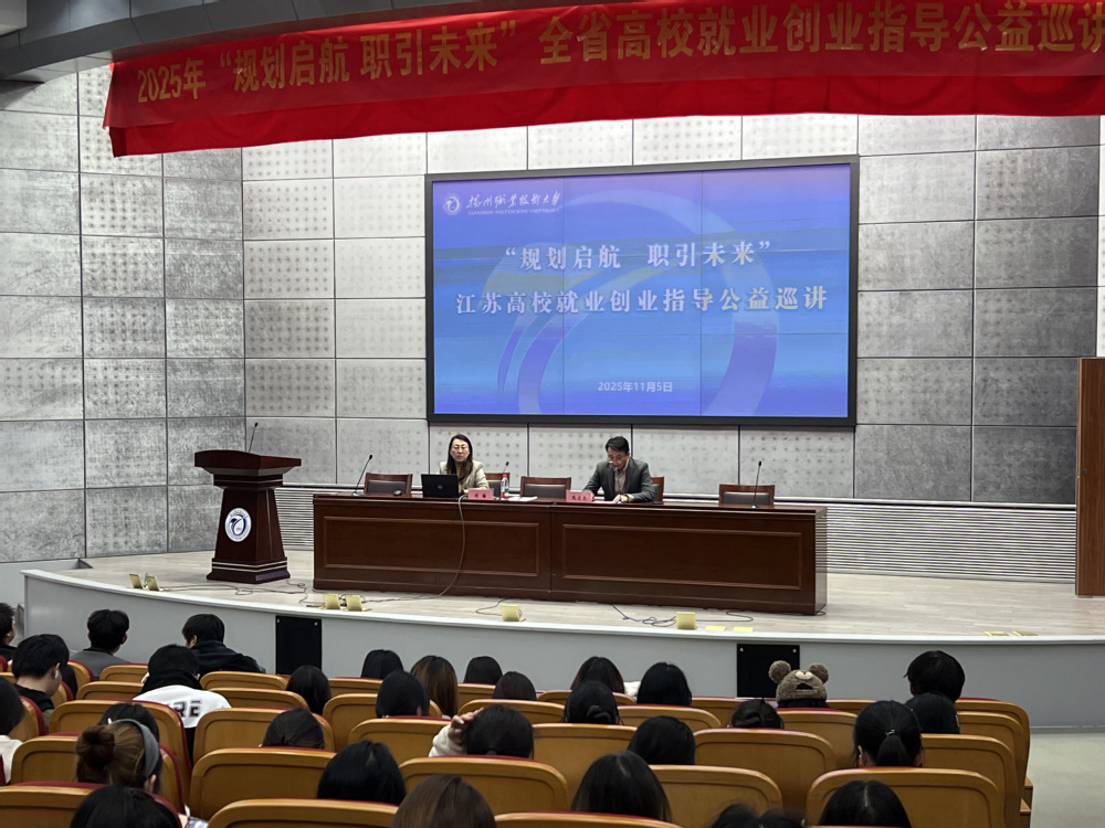 11月5日,由江苏省高校招生就业指导服务中心主办、我校招生就业处承办的2025年“规划启航 职引未来”高校就业创业指导公益巡讲活动在学校映月报告厅举行。活动由招生就业处副处长阮文杰主持,特邀人社部就业中心就业指导专家、人才培养发展专家、南京睿思浩越管理咨询有限公司总经理刘皓为我校2026届240余名毕业生带来了一场精彩讲座,助力学生明晰职业方向,增强实战技能。