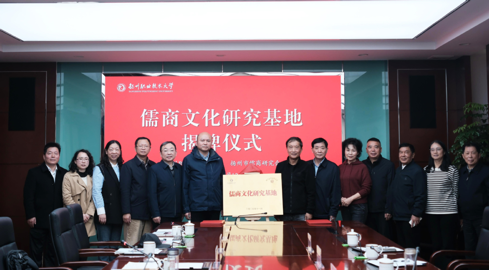 11月12日,我校与扬州市儒商研究会共建“儒商文化研究基地”揭牌仪式在崇德楼316会议室举行。校领导吴书安,扬州市儒商研究会会长刘俊,常务副会长兼秘书长吴忠俊等领导出席活动。仪式由校党委委员、办公室主任袁刚主持。