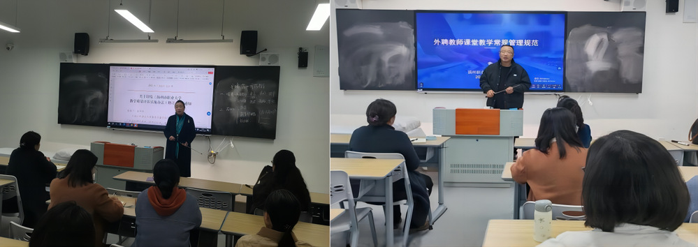 学院教学科研办主任蒋勇对外聘教师讲解了课前教学资料准备工作。学院实验室主任季琰对外聘教师在实验实训课上应注意的事项进行讲解,主要对实验室安全、卫生等提出相关要求和注意点。