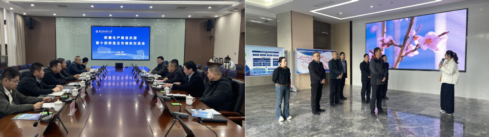 随后,双方在科技综合楼301会议室举行调研座谈会。陈亚鸿代表学校对代表团表示欢迎,并介绍了我校在专业建设、人才培养及就业服务方面的成果。颜俊重点推介了昆玉市现代农业、新能源、纺织服装等领域的就业机遇。双方围绕专业设置、毕业生实习、就业情况等议题展开深入探讨,为推动南疆地区产业发展与高校教育资源深度融合奠定坚实基础。
