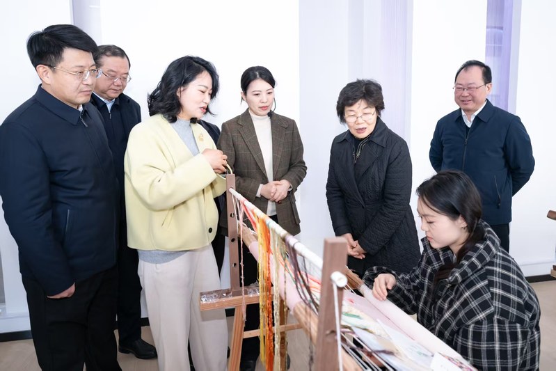 在技能大师工作室,她与入驻的行业大师、学生亲切交流,了解工作室在技艺传承、技术攻关、人才孵化等方面的工作进展。强调发挥大师引领作用,以“名师带徒”培育更多高端技能人才。
