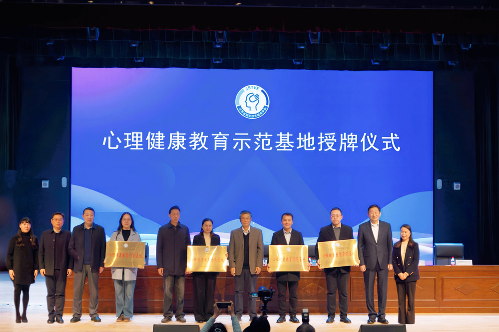 大会现场举行了“心理健康教育示范基地”授牌仪式,我校与与苏州工艺美术职业技术学院、镇江高等职业技术学校、南京市玄武中等专业学校等四所院校获评首批示范基地。在交流分享环节,学校心理健康教育中心张东老师以《“一核双融三协同”心理育人模式的工作实践》为题分享了学校心理育人方面的工作经验及成效。苏州工艺美术职业技术学院、镇江高等职业技术学校、南京市玄武中等专业学校也分别从艺术表达融入课程教学与实践活动、“校内协同、校际互动、家校社联动”三维协同体系、全员全程全方位心育格局等内容进行了分享交流。