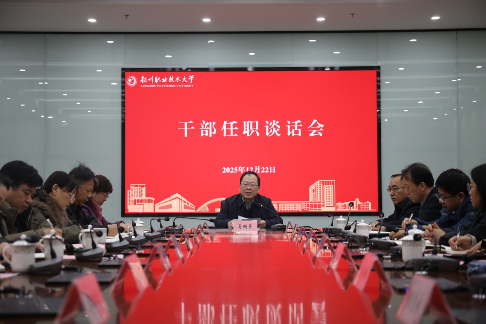 12月22日,学校党委在科技综合楼301会议室召开干部任职谈话会,党委书记马顺圣,党委副书记陈亚鸿,党委委员、纪委书记曹妍,党委委员、组织(统战)部部长华炜出席会议。新近提任的学校中层正职、中层副职干部以及学院(部门)内设机构负责人等35人参加了会议。