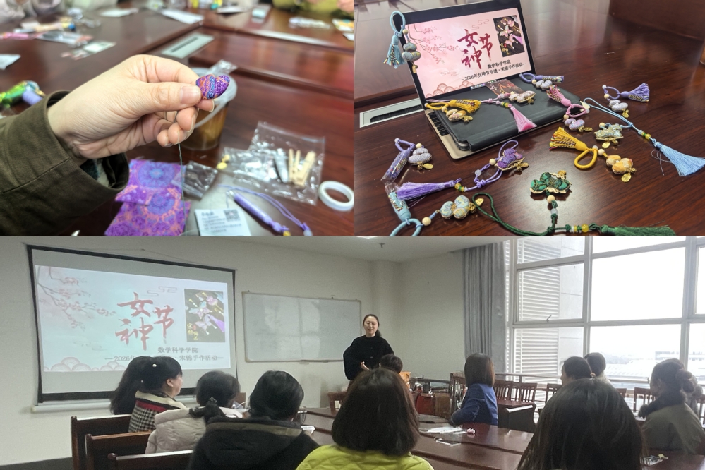 【数学科学学院】为庆祝第116个“三八”国际劳动妇女节,丰富女职工精神文化生活,传承中华优秀非遗文化,3月4日,数学科学学院在图书馆718会议室成功举办“非遗·宋锦手作”主题体验活动。学院女教师欢聚一堂,在非遗体验中共度温馨节日。