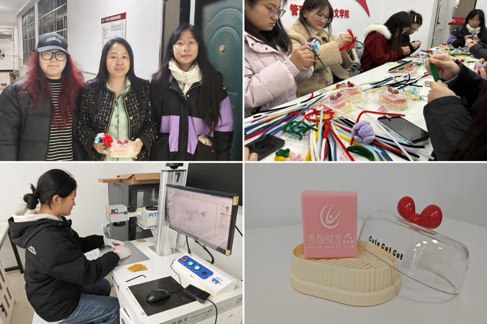 活动结束后,同学们将亲手制作的花朵与激光雕刻的肥皂赠与学院女教师和宿管阿姨们,向她们传递节日祝福。此次主题活动,不仅是一次专业的创意碰撞,更是一堂生动的心理健康实践课。同学们在动手创造中释放压力,在协作交流中建立连接,在温暖传递中收获成长。未来,学院将继续探索专业与心理健康教育的融合路径,为青年学生的专业成长和身心健康保驾护航。(朱威 夏志远)