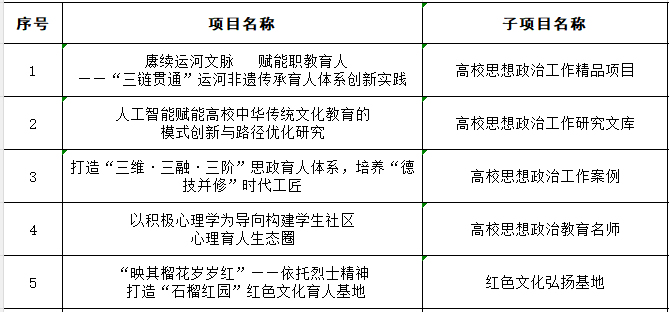 根据省教育厅办公室《关于做好教育部2026年度高校思想政治工作质量提升综合改革与精品建设项目和第四批省级项目申报工作的通知》,学校组织开展了项目申报、评审工作。拟推荐名单如下: