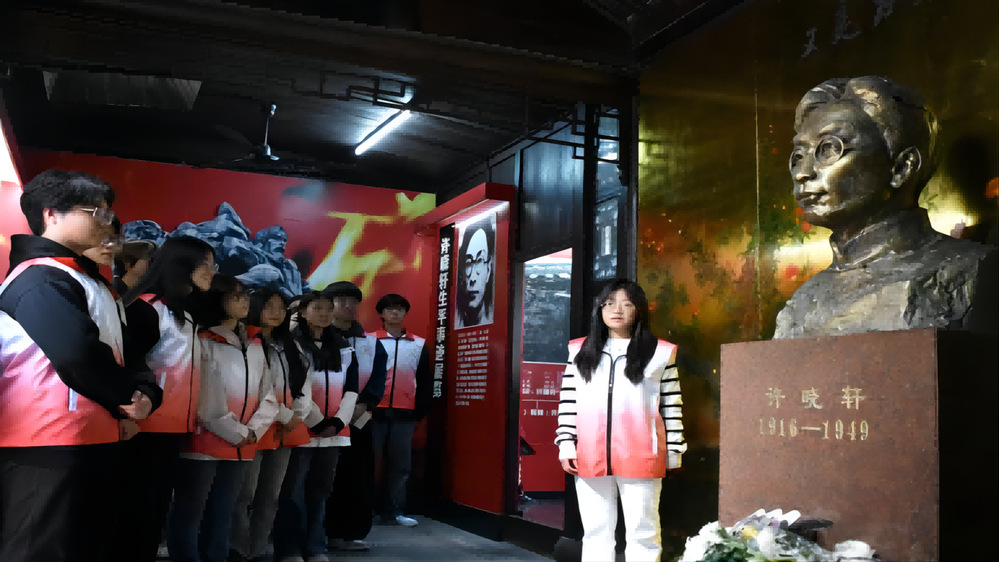 【机械工程学院】清明前夕,“晓轩”先锋队队员走进许晓轩烈士故居开展“寻根之旅”,队员们担任讲解员讲述烈士事迹、接受红色洗礼,并向故居赠送自主设计制作的铁艺剪纸文创作品,以专业技能致敬英烈、传承红色基因。(肖雅 胡林岚)