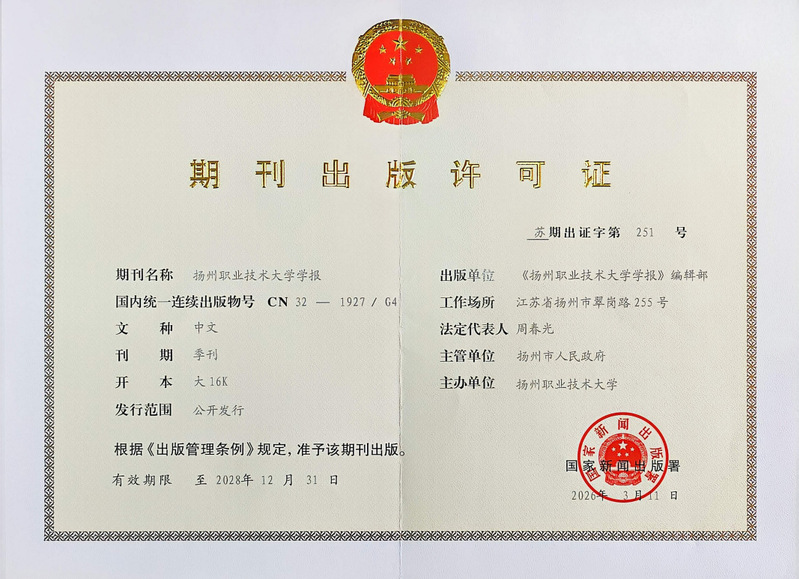 经国家新闻出版署审批,同意《扬州职业大学学报》(CN32-1529/G4)期刊更名为《扬州职业技术大学学报》,新编国内统一连续出版物号为CN32-1927/G4,主办单位由原扬州职业大学变更为扬州职业技术大学,出版单位由《扬州职业大学学报》编辑部变更为《扬州职业技术大学学报》编辑部(为扬州职业技术大学内设机构)。其他登记事项不变。