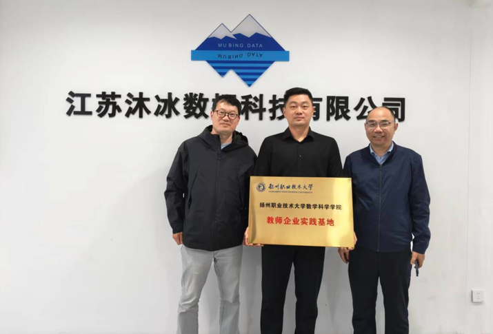 为深化产教融合,构建校企协同发展新格局,助力高水平“双师型”教师队伍建设,近日,数学科学学院副院长朱莹、应用数学系主任张生华老师一行赴江苏沐冰数据科技有限公司,共同举行“教师企业实践基地”揭牌仪式。