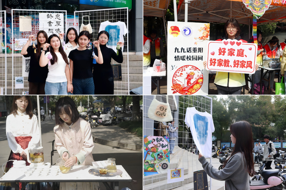 除校园市集外,经济贸易学院、电气与汽车工程学院、体育学院、国际交流学院、师范学院师生志愿者分别前往殷巷社区、龙头关社区、西八里铺颐养社区、悦来村开展“情暖重阳 智享生活”重阳节主题活动,用专业技能弘扬孝亲敬长的传统美德,为社区老人送去节日问候与暖心陪伴。信息工程学院联合教务处精心策划并成功举办了“非遗+重阳”主题手工活动。