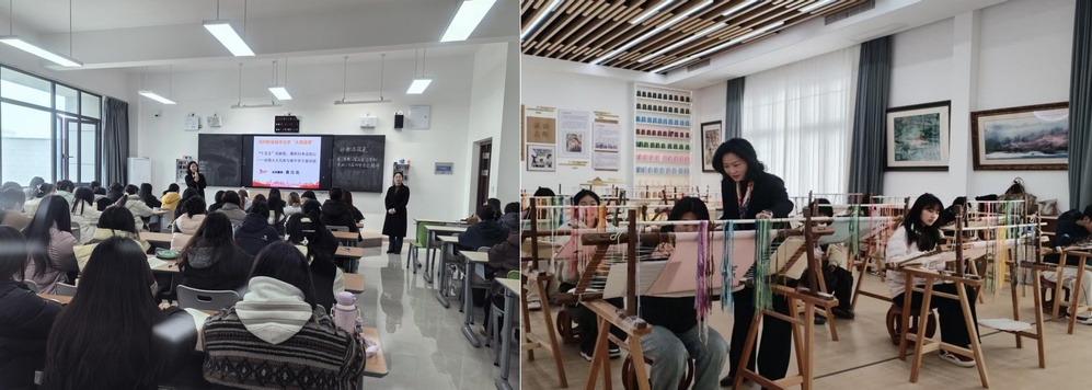 课堂伊始,思政课教师陈静结合“形势与政策”课程第一专题教学内容——“深入学习贯彻党的二十届四中全会精神 奋力开创中国式现代化建设新局面”,帮助同学们分析“十五五”时期在基本实现社会主义现代化进程中的重要地位,号召同学们在新时代新征程上奋力书写挺膺担当的青春篇章。同时,她邀请乱针绣扬州市级代表性传承人、全国人大代表莫元花老师为同学们分享从全国两会带回的“热气腾腾”的精神食粮——现场聆听政府工作报告和审议“十五五”规划《纲要》的深刻感悟。