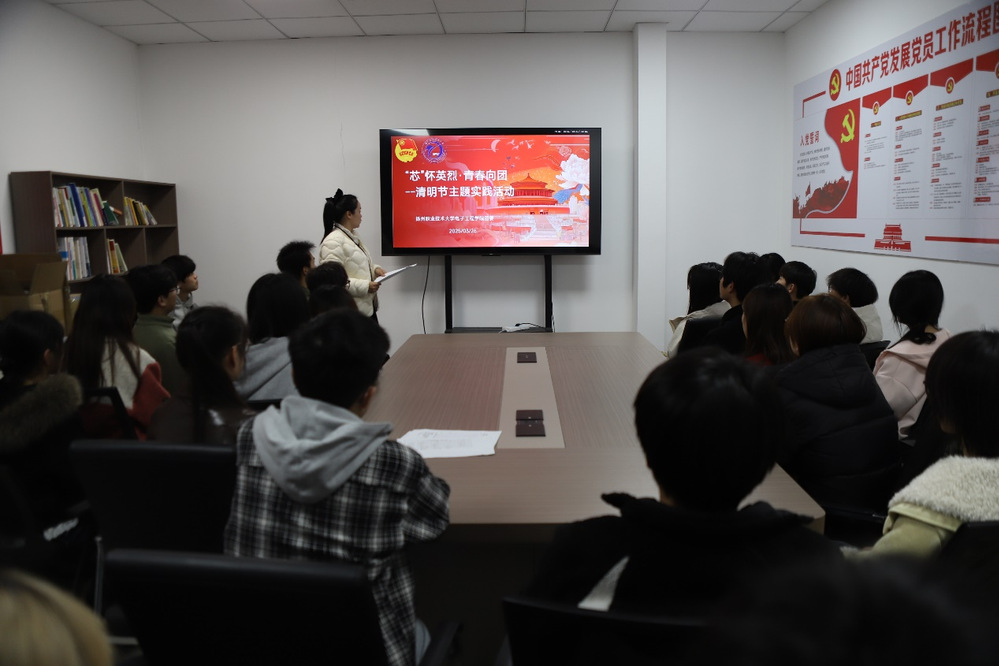 【电子工程学院】日前,电子工程学院组织入团积极分子开展“‘芯’怀英烈·青春向团”主题活动,通过微团课学习、云端祭扫英烈、红色家书诵读等多元环节引导青年学子感悟革命精神、坚定理想信念。活动中,学子们学习高邮战役历史,通过中华英烈网为高邮籍烈士开展线上祭扫,参与红色家书诵读,进一步强化了历史使命感,厚植了爱国情怀。(刘静)